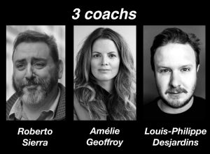 Lors de la prochaine séance, les coachs seront : Roberto Sierra, Amélie Geoffroy et Louis-Philippe Desjardins